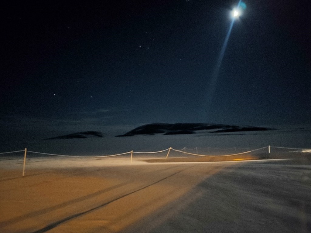 ^The day after posting Entry 5 and talking so much about the sun below the horizon becoming more visible blah blah blah polar night this and that, guess who decides to make an appearance? The moon! Right where the light was coming from! Surprise was immediately followed by disappointment as I figured I must have been wrong, and the light beyond the horizon was just the moon the whole time. There is just one problem with that. That is due South. Moon rises in the East, sets in the West. So why did it rise in the South? And why is there still light coming from behind the mountains?