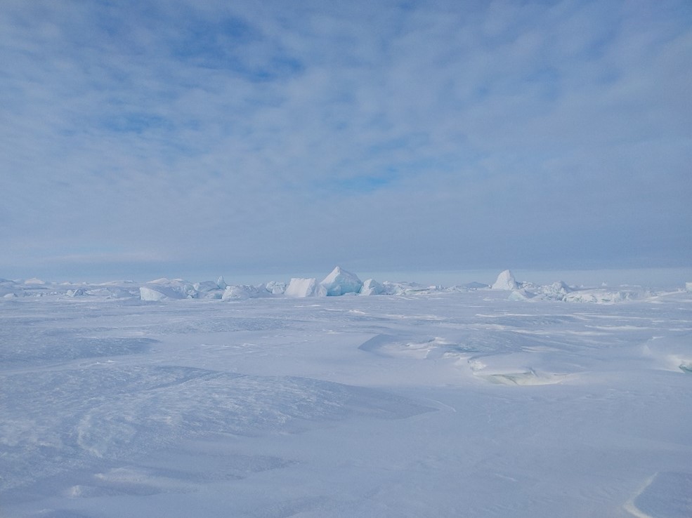 Saturday morning, after a quick brunch, me, Hannah, our boss Andrew, the ECCC Weather Station crew, and the two ECCC staff set out for Black Cliffs Bay – a bay of frozen sea ice northwest of the station. We were on high alert due to bear tracks being sited the day prior and once assigned our roles, whoever did not need to be aiding with the coring, was to be on bear watch.