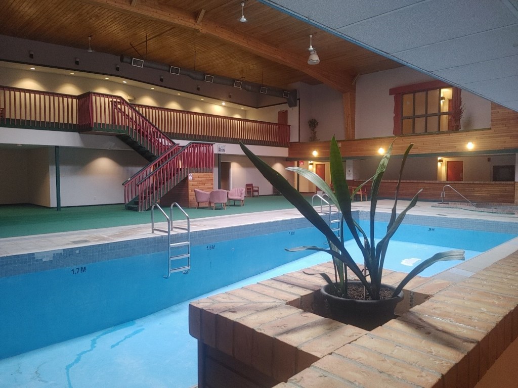 Walking through another doorway to the rooms section of the Inn, I thought I had mistakenly walked into the indoor pool area. Except the pool was empty, and in the middle of what was a very regular, if not a little liminal, looking hotel. Rainwater slowly leaked from the skylights far above and dripped onto the dusty tile floor – it was the only sound that could be heard at all. Red room doors lined the walls of the first and on a look up, the second floor as well, but there were no people. I was room 105 at the end of the hall. I promptly barricaded myself inside.