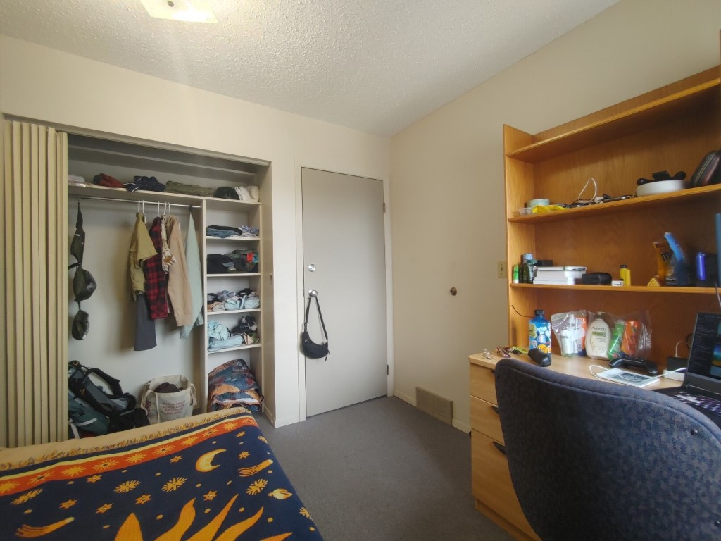 All four of us share the top floor (we each get our own rooms of similar size) of our townhouse that’s equipped with a two full bathrooms, full kitchen, common area, and basement laundry.