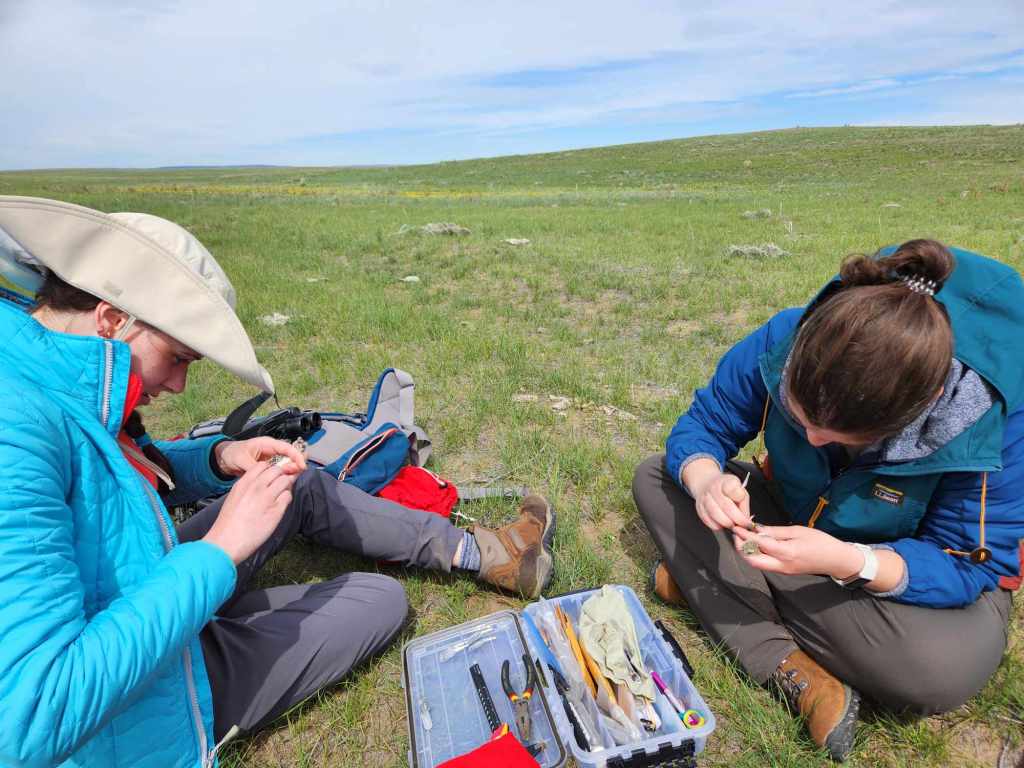 Me and Ava banding the chicks of the first Horned Lark nest we found last Wednesday.