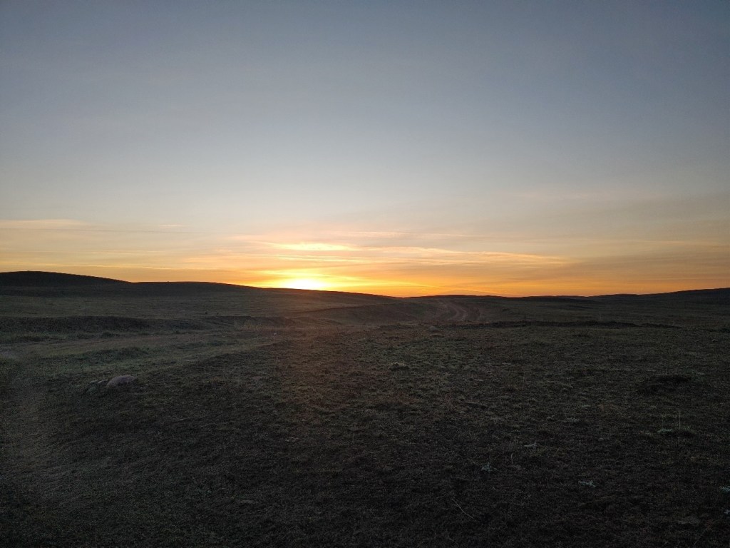 The sun rose over the prairie, shining a golden hue on the dewy grass and nodding onions not yet in bloom. The low-lying hills rolled on far into the distance, with a gnarled hunched over tree the only sign of plant life over 6 inches tall. All around us were the choruses of songbirds I had never heard before, yet I couldn’t see a single owner of any of the voices. It felt like someone was playing a prank almost.