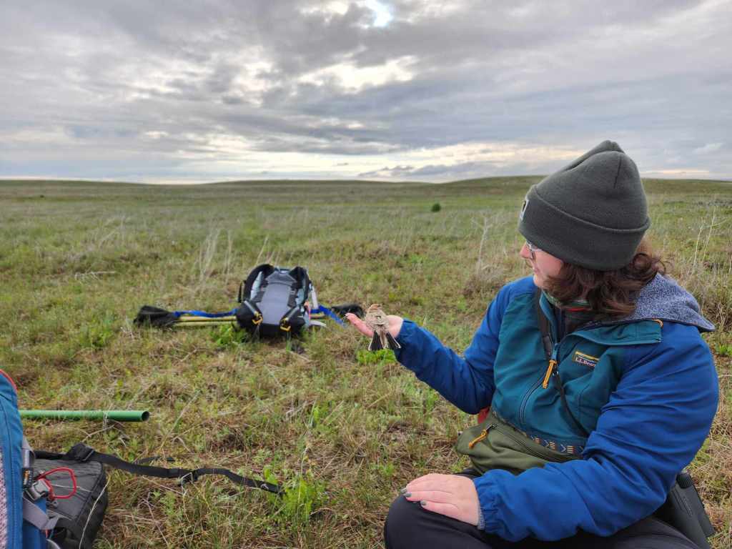 - Nest Surveys: Searching for nests by watching males and females interact, watching the female returning to her nest, accidentally flushing her off the nest if you are nearby and randomly stumbling upon them. Typically, two of us will pair off to go survey in one part of the site, and the other singular person will have a list of all the nests in the site that are still active and check on them one by one. It’s important we have a good chunk of active nests that we watch for chicks to band when they are old enough (~7 days).