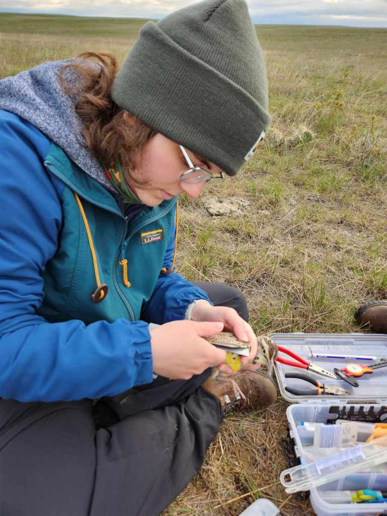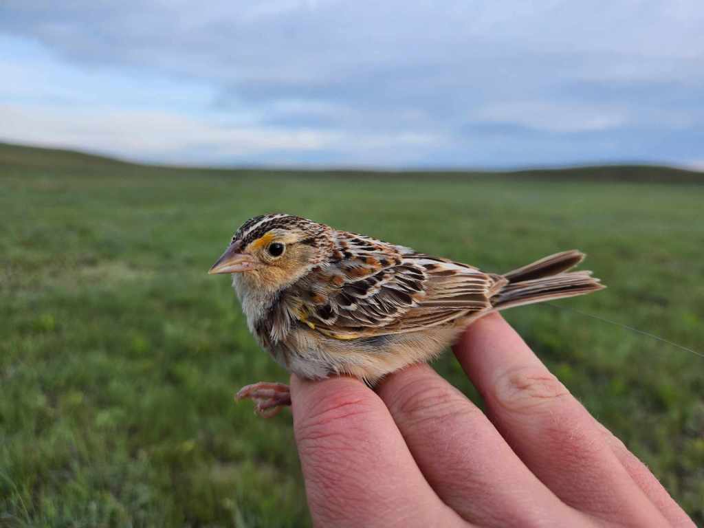 We are also responsible for attaching radio tags to the backs of some of the species found in the Suffield NWA; Horned Larks, Chestnut-collared Longspurs, Thick-billed Longspurs, Grasshopper Sparrows, Bairds Sparrow, and the Sprague’s Pipit.