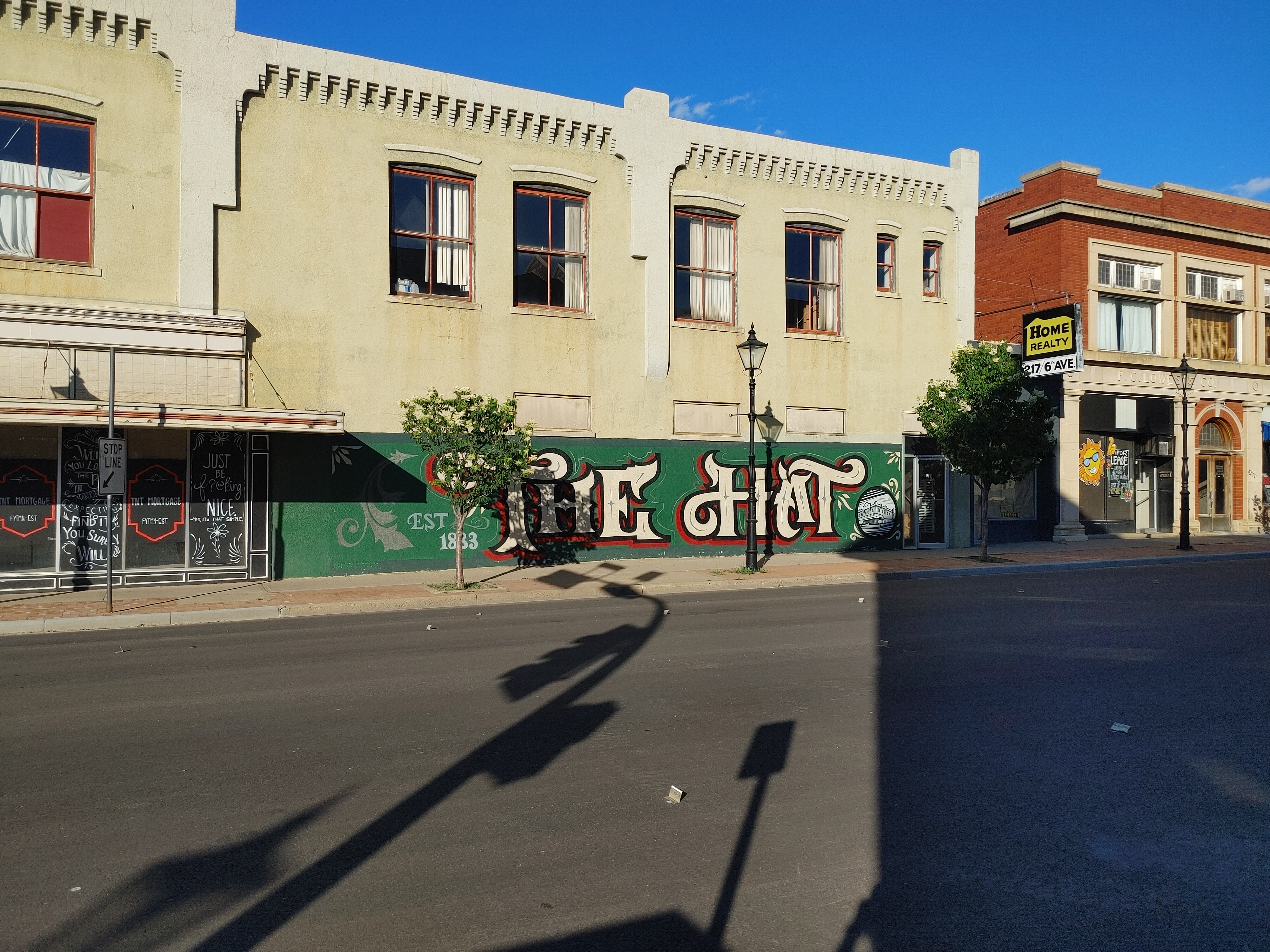 Another thing I noticed is the pure pride many Medicine Hat natives have for their home town. Medicine Hat itself reminds me quite a bit of Downtown Kitchener in terms of architecture so I have been drawing many parallels and comparisons of the two, especially in the art and community vibe dynamics. From the many Hell’s Basement Brewery t-shirts and hats – a nod to the local slogan of ‘All Hell For a Basement’ which describes the wealth of natural gas deposits beneath the city, the hundreds of Big M (M for Medicine Hat) Ford bumper stickers originating from a local ford dealership, tons of local festivals and pop-up markets, a healthy tourism centre, and the sheer capacity of art that lines the walls of old brick buildings and covers every post and electric box on every corner, you can tell the people who live here love it. I find a lot of southern Ontario cities have been trying to promote more wall art and while the art is beautiful and I don’t doubt the passion the artist has for their creation, it does not feel like it stems from the same place that the art covering Medicine Hat stems from.