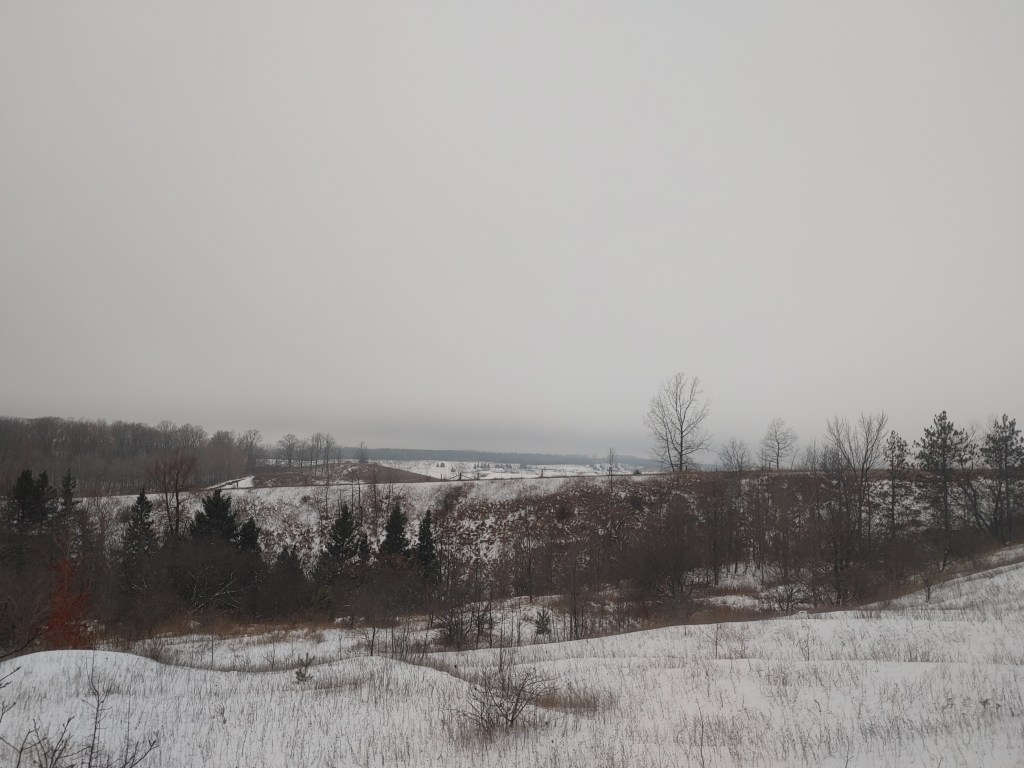 Eventually, the trail brings you into a forest of scattered cedars thickets, birches, and other deciduous trees that had all lost their leaves. There’d be segments of trail where you’d walk within the thick cedars and feel comforted by the sheltered they’d provide, but looking deeper into the thicket off trail felt a little ominous when you’re used to the bare visibility of the naked deciduous trees.